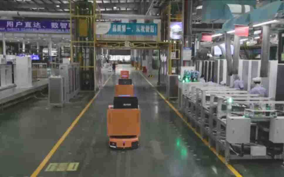 为车载冰箱物流配送打造的智能解决方案,,,包含产中物流通过潜伏举升AMR搬运至线边,,,产后成品物流智能仓储,,,流程包含产中物流智能齐套入库,,,线边安灯叫料AMR智能配送至线边,,,成品入库、、、出库,,通过无人堆高车机器人,,,,智能仓储管理替代人工作业管理,,,实现更高存储、、、更高效率、、更具柔性化的解决方案。。。